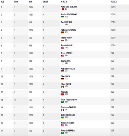 Стоит отметить, что с высотой 2.31 метра справились только шесть спортсменов. Помимо Бондаренко и Баршима, квалификационный норматив выполнили Тихомир Иванов (Болгария), Матеуш Пржибилко (Германия), Роберт Грабарз (Великобритания) и Даниил Лисенко (нейтральная страна). Остальные шесть спортсменов отобрались по результату 2.29 метра.