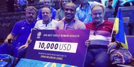 Украинец Жан Беленюк получил денежный приз, как лучший борец 2016 года.
