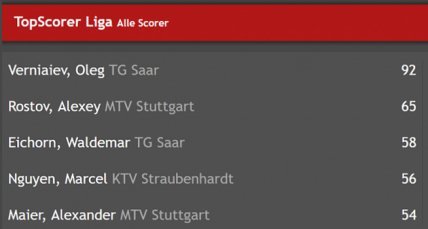Украинский универсал - главная звезда не только своего клуба, но и всего чемпионата. В активе гимнаста уже 92 очка. Это на 27 больше, чем у Алексея Ростова ("Штутгарт"), который в списке лучших занял второе место: