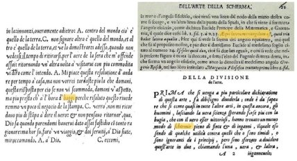 Научный сотрудник НИИ «Исследования мировых воинских традиций и криминалистических исследований применения оружия» Анна Филиппова при работе с итальянскими трактатами, в первую очередь, отметила, что некоторые из них настолько древние, что написаны прописью вручную. Примером такого трактата является труд под названием «Причины победоносного владения оружием» Джакомо ди Грасси (1570 г.). Также в тексте может присутствовать слияние нескольких языков. Например, были трактаты, в которых встречались испанские, французские и даже латинские слова («Трактат о науке оружия с философскими рассуждениями» Камилло Агриппа, «Причины победоносного использования оружия» Джакомо ди Грасси), а также абсолютно незнакомые выражения, которые получились в результате слияния нескольких слов.