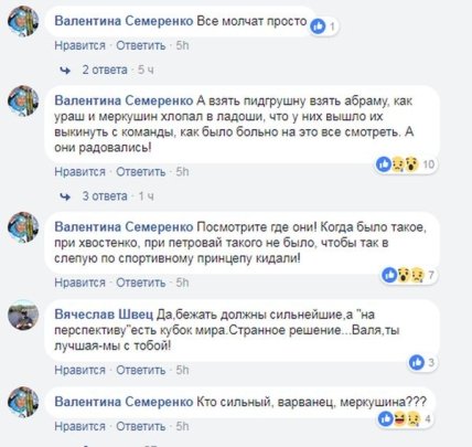 "Велепец с меркушиным провели контрольную между Леной и Настей, если они отбирались в эстафету, могли и нам сказать, я бы масстарт не бежала бы, а отбирались в эстафету, все в нычку, если бы Лена не проиграла бы на те 25 сёк, то и вита не бежала бы."