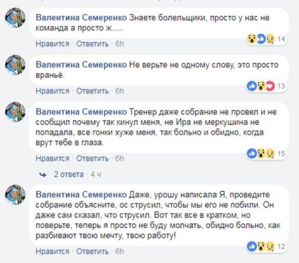 "Тренер даже собрание не провел и не сообщил почему так кинул меня, не Ира не меркушина не попадала, все гонки хуже меня, так больно и обидно, когда врут тебе в глаза."