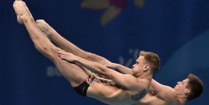 В синхронных прыжках с вышки (10 метров) Максим Долгов и Александр Горшковозов заняли 2-е место и завоевали серебро (417,93 балла), сообщает официальный сайт соревнований.
