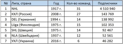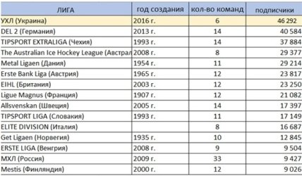 Украинская хоккейная лига вошла в топ-10 лиг мира по количеству подписчиков