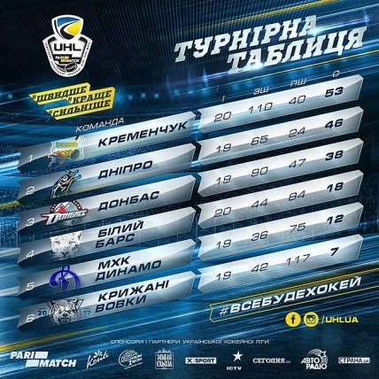 Таким образом, «Днепр» сохранил 4-очковое отставание от 1-го места в турнирной таблице по итогам 19 матчей. В свою очередь «Белый Барс» опережает МХК «Динамо» на 6 очков, имея на 2 проведённых игры больше.