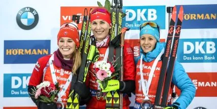 Анастасия Кузьмина в борьбе с Доротеей Вирер выиграла первый масс-старт сезона на этапе Кубка мира в Нове Место.