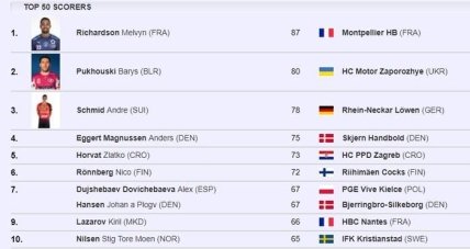 На счету белоруса 80 точных бросков, у ближайшего преследователя Андре Шмида из Рейн-Неккар Левен - 78. Первое место удерживает француз Мелвин Ричардсон, забросивший 87 голов, однако его Монпелье уже закончил выступления в ЛЧ, проиграв македонскому Вардару.