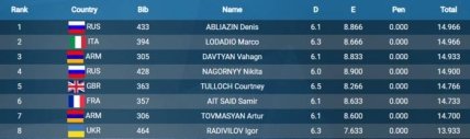 В воскресенье, 14 апреля, у Верняева и Радивилова будет еще шанс выиграть медаль чемпионата Европы - Игорь выступит в финале в опорном прыжке, а Олег вместе с Игорем Пахнюком выступят на брусьях. У девушек в финале на колоде выступит Анастасия Бачинская.