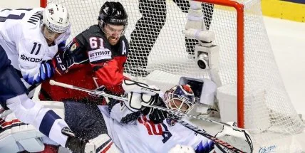 Сборная Канады победила команду США в заключительном матче группового этапа чемпионата мира по хоккею, встреча завершилась со счётом 3:0.
