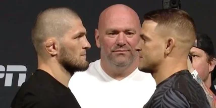 В ней принял участие и Хабиб Нурмагомедов с Дастином Порье. После общения с прессой бойцы провели традиционную дуэль взглядов, после чего пожали друг другу руки.