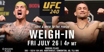 В ночь с 27 на 28 июля (время киевское) в Эдмонтоне (провинция Альберта, Канада) состоится турнир по смешанным единоборствам UFC 240. Главным его событием станет титульная схватка в полулёгком весе, в которой встретятся чемпион организации Макс Холлоуэй и экс-чемпион лиги Фрэнки Эдгар. В преддверии противостояния бойцы прошли официальную церемонию взвешивания и сумели уложиться в лимит дивизиона, показав на весах одинаковые цифры — 65,7 кг.