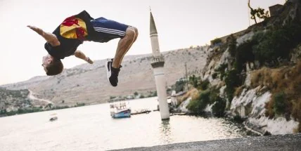 Халфети, «скрытый райский уголок» юго-восточного региона Анатолия, стал сценой для зрелищного перфоманса. Спортсмен Red Bull Александр Титаренко, один из лучших в мире в дисциплине фриран, показал невероятное выступление из сложных движений, их безупречного потока и уверенного разнообразия трюков между крышами и старыми зданиями исторической жемчужины Турции Халфети - живописного древнего города, ныне почти полностью лежащего под водой. Титаренко выполнил головокружительные прыжки и отчаянные переходы крышами, а завершил свой невероятный перформанс прыжком в воду с минарета, который является символом Халфети.