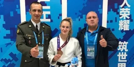 Председатель CISM в Украине Юрий Финогенов поздравил нашу дзюдоистку работника ВС Украини Марию Скоро первой наградой 7-х Всемирных Игр среди военнослужащих.