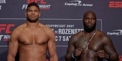 В преддверии противостояния соперники прошли официальную церемонию взвешивания. По её итогам Розенстрайк оказался немного тяжелее соперника, показав 113,6 кг. Вес Оверима составил 112,4 кг.