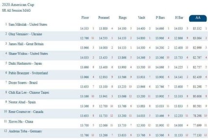 Первое место по результатам соревнований одержал американец Сэм Микулак, набрав в сумме 85,332 очка. Немного меньше удалось собрать в свою копилку украинцу - 83,064. А на третьем месте оказался Джеймс Холл из Великобритании с 82,999 баллами.