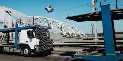 Паркурист сделал невероятное сальто между грузовиками на киевском мосту (фото, видео)