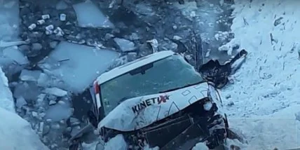 Микроавтобус сборной России по лыжным гонкам слетел в замерзшее озеро. Чудом никто серьезно не пострадал.