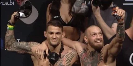 Конор Макгрегор и Дастин Порье провели официальную процедуру взвешивания, на которой сошлись в финальной дуэли взглядов.