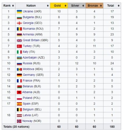 Кроме того, украинцы выиграли и медальный зачет, включающий награды, которые получены за дисциплины рывок и толчок:
