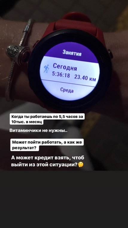 Затем Васильева опубликовала снимок со своей активности во время последней тренировки. "Может, пойти работать, а как же результат? А может, кредит взять, чтоб выйти из этой ситуации?" - порассуждала Васильева на эту тему.