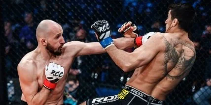 На турнире по смешанным единоборствам RCC 9 в Екатеринбурге состоялось немало зрелищных боев, в частности, в поединке местного бойца Артура Караваева против москвича Юрика Смояна в весовой категории до 77,1 кг был зафиксирован эффектный нокаут.
