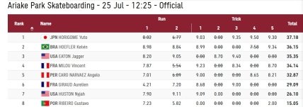 Результаты соревнований по скейтбордингу у мужчин на улице: