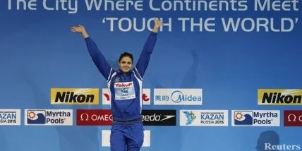Дарья Зевина проплыла 200-метровку на спине с результатом 2.09.05.