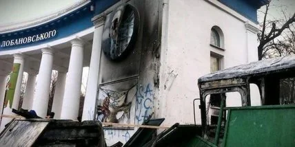 В ходе вчерашних массовых беспорядков на улице Грушевского пострадала колоннада стадиона "Динамо" Киев имени легендарного тренера Валерия Лобановского.