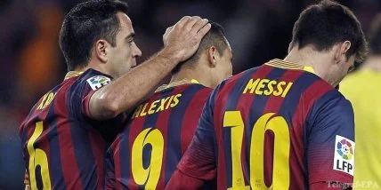 "Барселона": Вальдес, Дани Алвеш, Бартра, Пике, Адриано, Бускетс, Хави, Иньеста, Алексис Санчес, Педро, Месси.