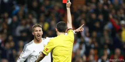 Защитник мадридского "Реала" Серхио Рамос недоволен своим удалением в эль-класико.