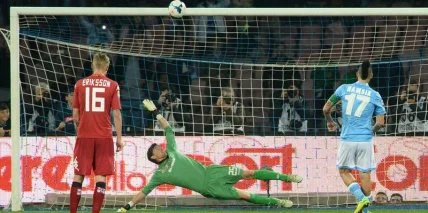 Партенопеи реализовал три безответных мяча в ворота сардов.