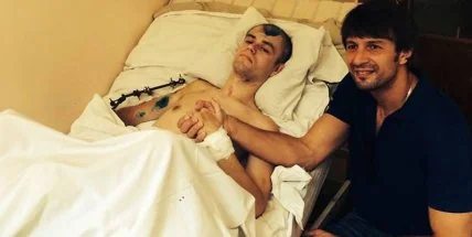 "Сереже из военного госпиталя тяжело. Иногда очень тяжело. Но даже несмотря на боль, он находит в себе силы шутить. Сегодня у Сережи были гости. Вначале Сережа долго смотрел на Александр Шовковский и ничего не говорил. А потом просто взял его руку и долго долго не отпускал.
