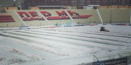 Дело в том, что в связи с ухудшением погодных условий (в Перми начался снегопад) поле не было готово к проведению матча.