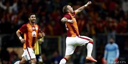 "Галатасарай" вырвал победу у "Фенербахче" в матче шестого тура турецкой Суперлиги. Встреча, проходившая в Стамбуле на стадионе "Тюрк Телеком — Али Сами Йен", завершилась со счетом 2:1. Все три гола были забиты в концовке поединка. Победу "Галатасараю" принес голландец Снейдер, который выстрелил дублем. Отметим, "Фенербахче" большую половину второго тайма провел в 10-м из-за удаления Бруну Алвеша.