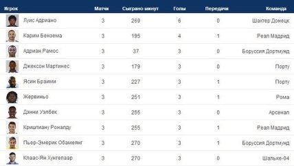 Список лучших бомбардиров после первого круга Лиги чемпионов (1-й круг)