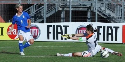 Паритет в результате украинки восстановили на 34-й минуте. Пекур со штрафного подала точно на Апанащенко, и та головой пробила без шансов для итальянского голкипера - 1:1.