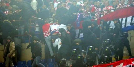 Матч между сборными Италии и Хорватии был прерван по ходу второго тайма. На 75-й минуте судья матча Бьорн Куйперс (Нидерланды) увёл команды в подтрибунные помещения. Причиной остановки встречи отборочного цикла чемпионата Европы — 2016, проходившей в Милане, послужили действия фанатов гостей, которые бросали пиротехнику на газон стадиона "Сан-Сиро — Джузеппе Меацца". Вскоре полиция остановила беспорядки, начавшиеся на секторе болельщиков сборной Хорватии. Через 10 минут встреча была возобновлена.