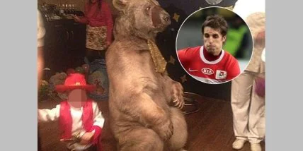 Британская пресса в ужасе от поступка форварда московского "Торпедо", Кирилла Комбарова. Для того, чтобы устроить своему двухлетнему сыну незабываемый день рождения, россиянин привел на праздник настоящего медведя.