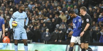 Полузащитник "Манчестер Сити" Яя Туре во время матча 16-го тура английской Премьер-лиги с "Лестер Сити" попал мячом по лицу болельщицы.