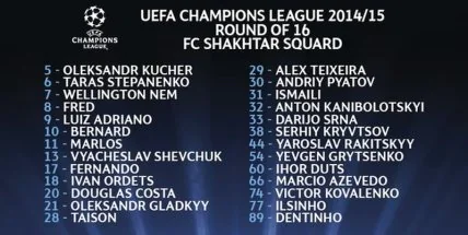Полузащитники: Степаненко, Фред, Марлос, Бернард, Фернандо, Дуглас Коста, Тайсон, Алекс Тейшейра, Коваленко, Илсиньо, Дентиньо.