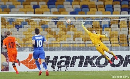 Днепропетровский "Днепр" добыл историческую путевку в полуфинал Лиги Европы УЕФА, обыграв в Киеве "Брюгге".