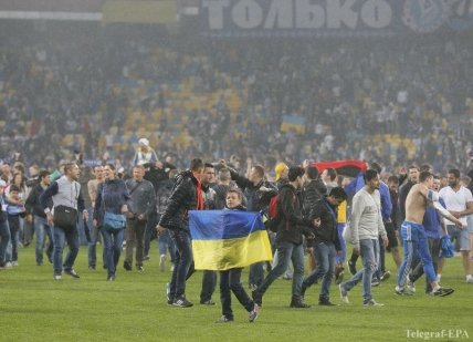 Сраху же после финального свистка на поле высыпали болельщики, которых правда вскоре удалось увести. Артем Федецкий с помощью микрофона уговорил фанов, которые на радостях выбежали на поле, чтобы те ушли и не подводили команду в случае возможных санкций. Но их понять можно, ведь впервые после донецкого "Шахтера" украинская команда играет на таком уровне.