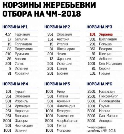 И так, сборная Украины (27-я в рейтинге ФИФА) попала в третью корзину. В зоне УЕФА при рассеивании по корзинам пользовались июльским рейтингом ФИФА. Если бы наша сборная соизволила в последних товарищеских матчах добыть три победы, а не одну, то вероятно мы бы попали во вторую корзину.