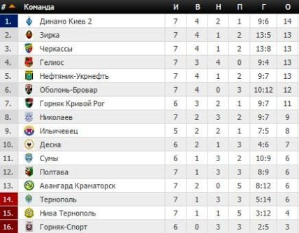 І Лига Украины. Турнирная таблица по итогам 7-го тура