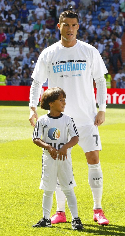 Мальчик-беженец, которому подставила подножку оператор венгерского канала, вышел на поле с Криштиану Роналду.
