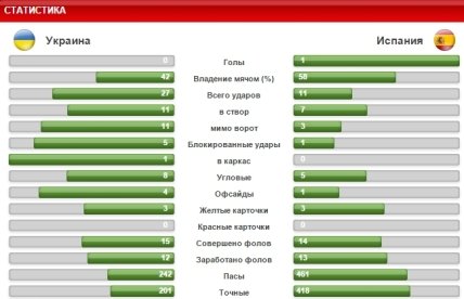 Но вчера сборная Украины создала рекордное количество моментов у ворот соперника. 27 ударов по воротам Де Хеа (11 в створ ворот) - против 11 ударов (7 в створ) у испанцев.