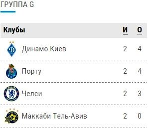 После третьего тура в группе G ситуация такая: 1. Порту (7), 2. Динамо (5), 3. Челси (4), 4. Маккаби (0).