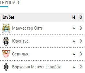 А в группе D "Манчестер Сити", который не так удачно выступает в еврокубках, сумел первым из английских клубов выйти в серию плей-офф. Для этого Стерлингу и компании пришлось вчера еще раз наказать "Севилью", которая решила сыграть в открытый футбол в родных стенах. Вторым в этой группе идет "Ювентус" - финалист прошлогодней Лиги чемпионов.