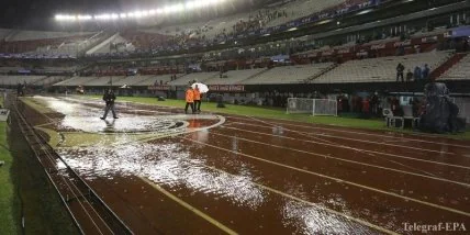 Встреча должна была состояться в 2 часа ночи по киевскому времени. Однако перед игрой аргентинскую столицу накрыл сильный ливень и под водой оказалось пол-поля стадиона "Монументал". Затоплены были и улицы вокруг арены, препятствуя прибытию зрителей на стадион. Кроме того, синоптики не обещали быстрого завершения непогоды, а на утро прогнозировали продолжение шторма.