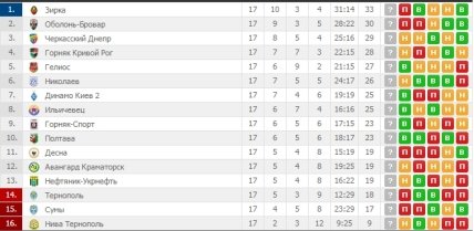 В таблице указаны результаты с учетом технической победы харьковского "Гелиоса" над тернопольской "Нивой".